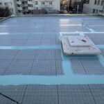 足場を建てる際、お隣様と距離が近いため、慎重に安全に設置いたします