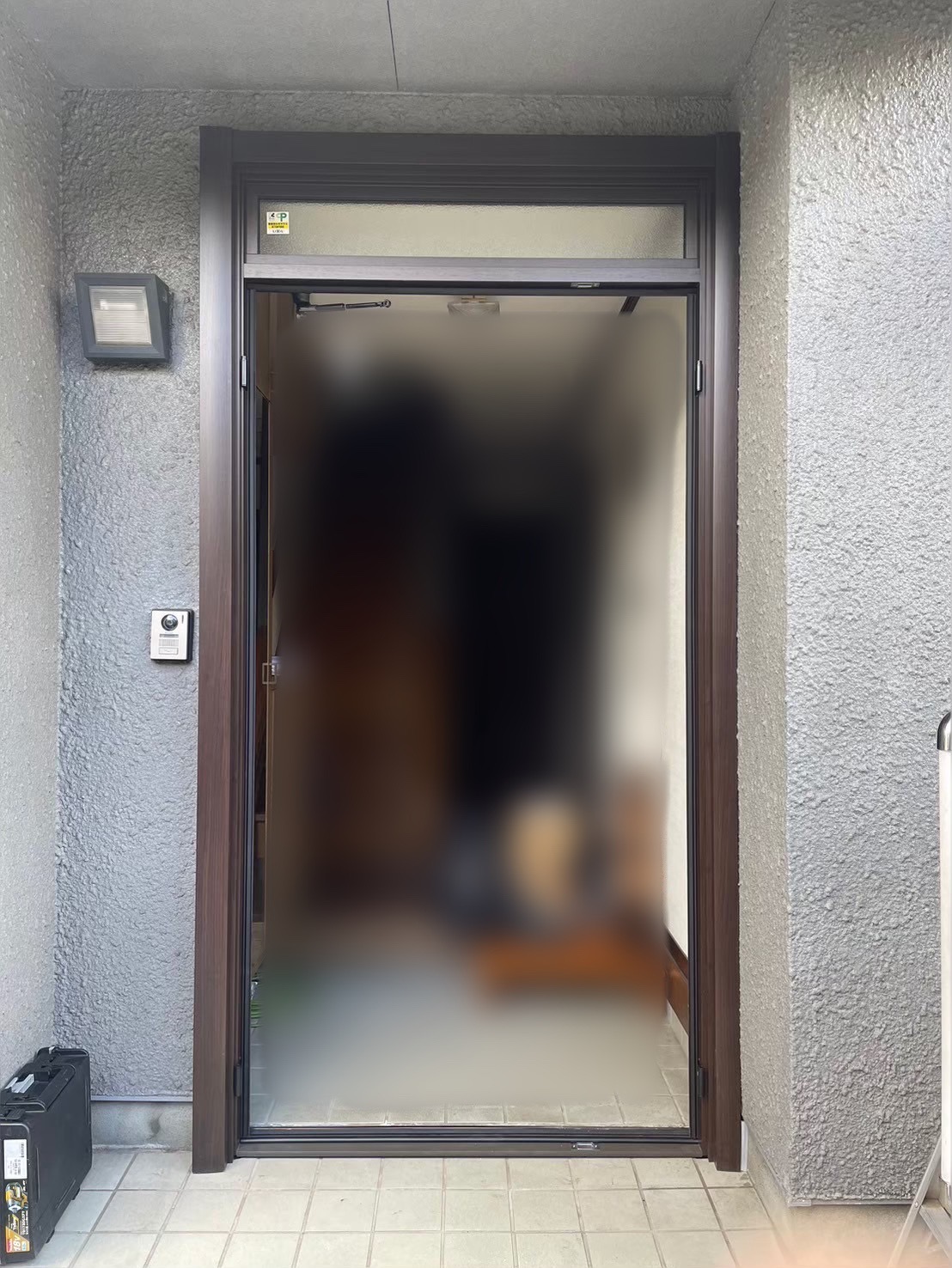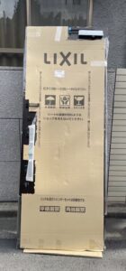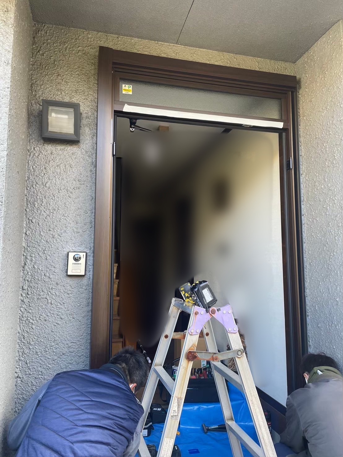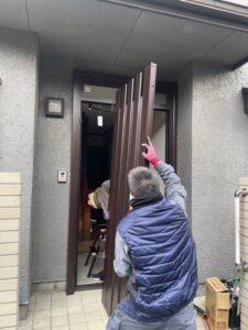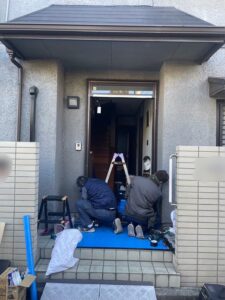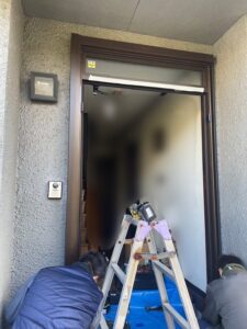 ↓新しい玄関ドア取り付けの準備中