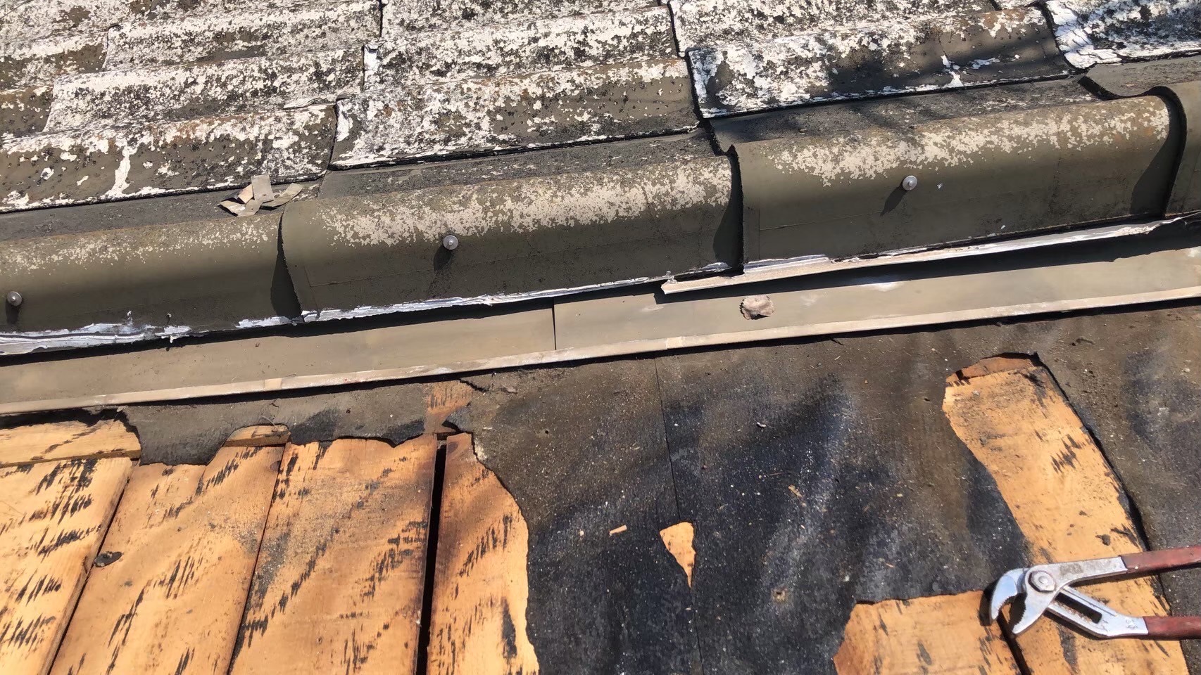 ↓錆が進んでいた棟板金近くは下地も劣化していました