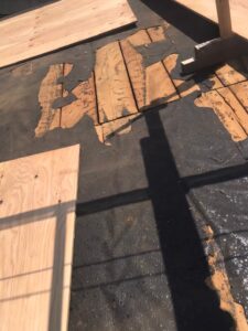 ↓全てのコロニアルを剥がし降ろし終え、屋根下地工事が始まりました