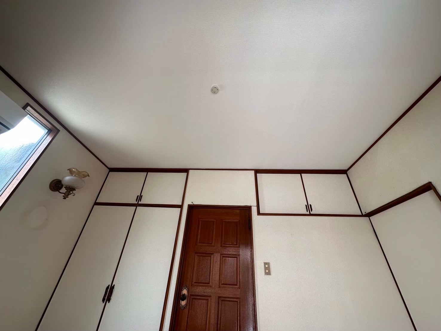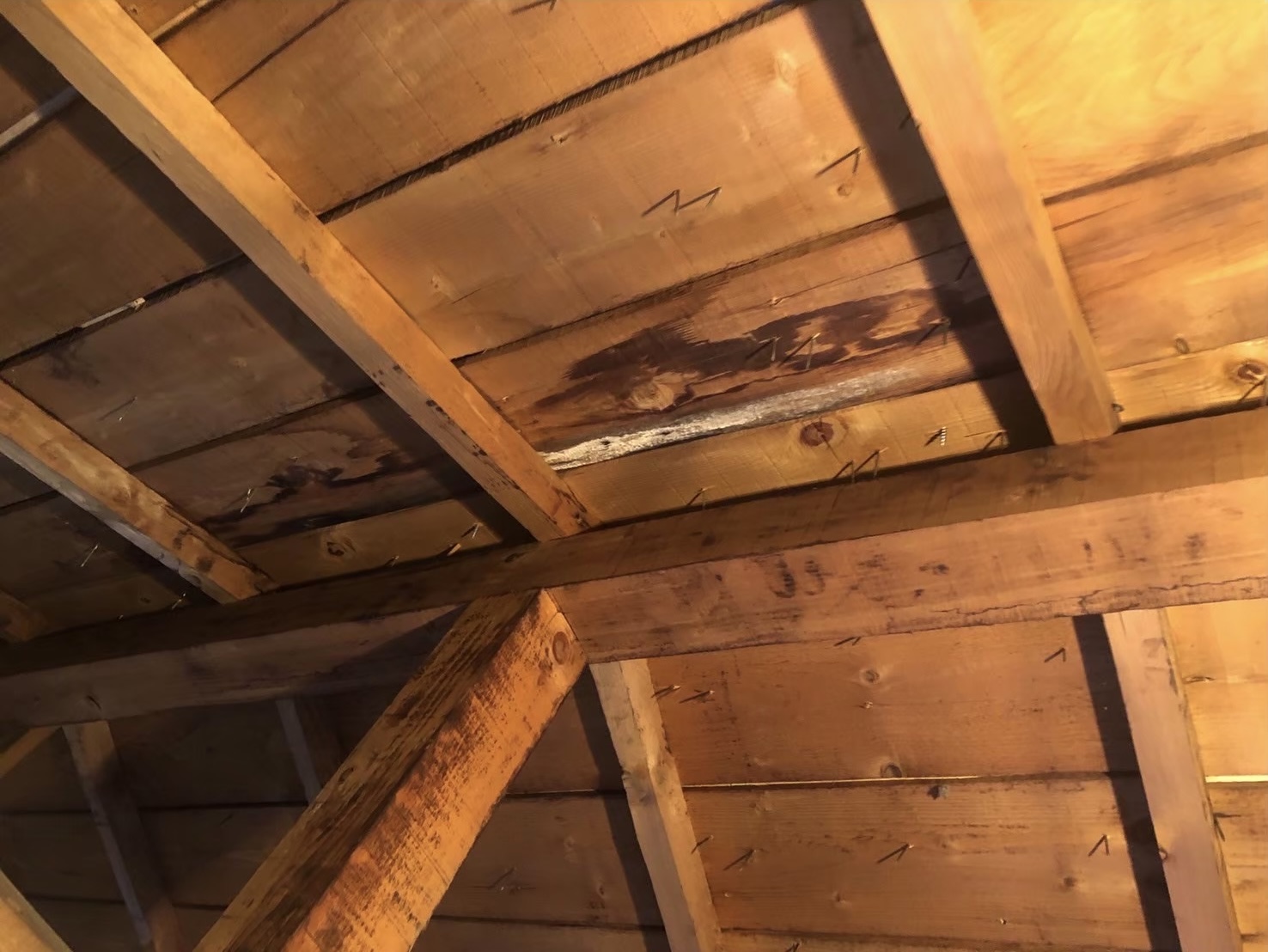 ↓屋根の棟付近の内側になります、雨染みが確認できました