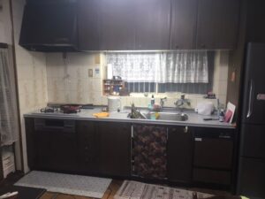 当時流行っていた暗めのシステムキッチンを改修していきます