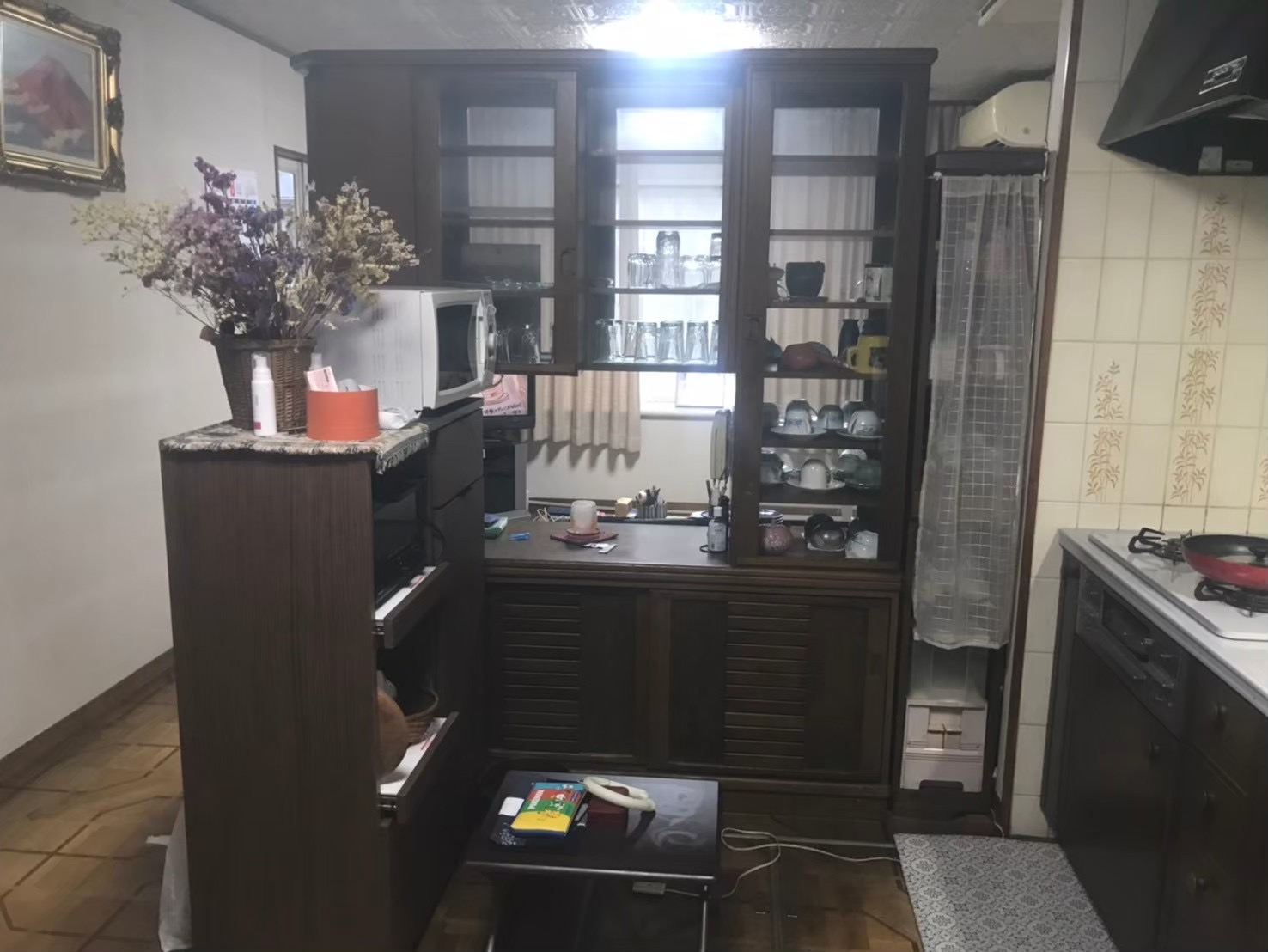 ↓こちらの目隠しにしていた食器棚は一部撤去していきます