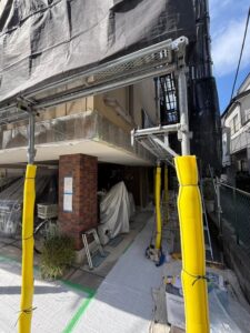 足場を建てるため、近隣の方々へ工事案内をしっかり済ませておきます