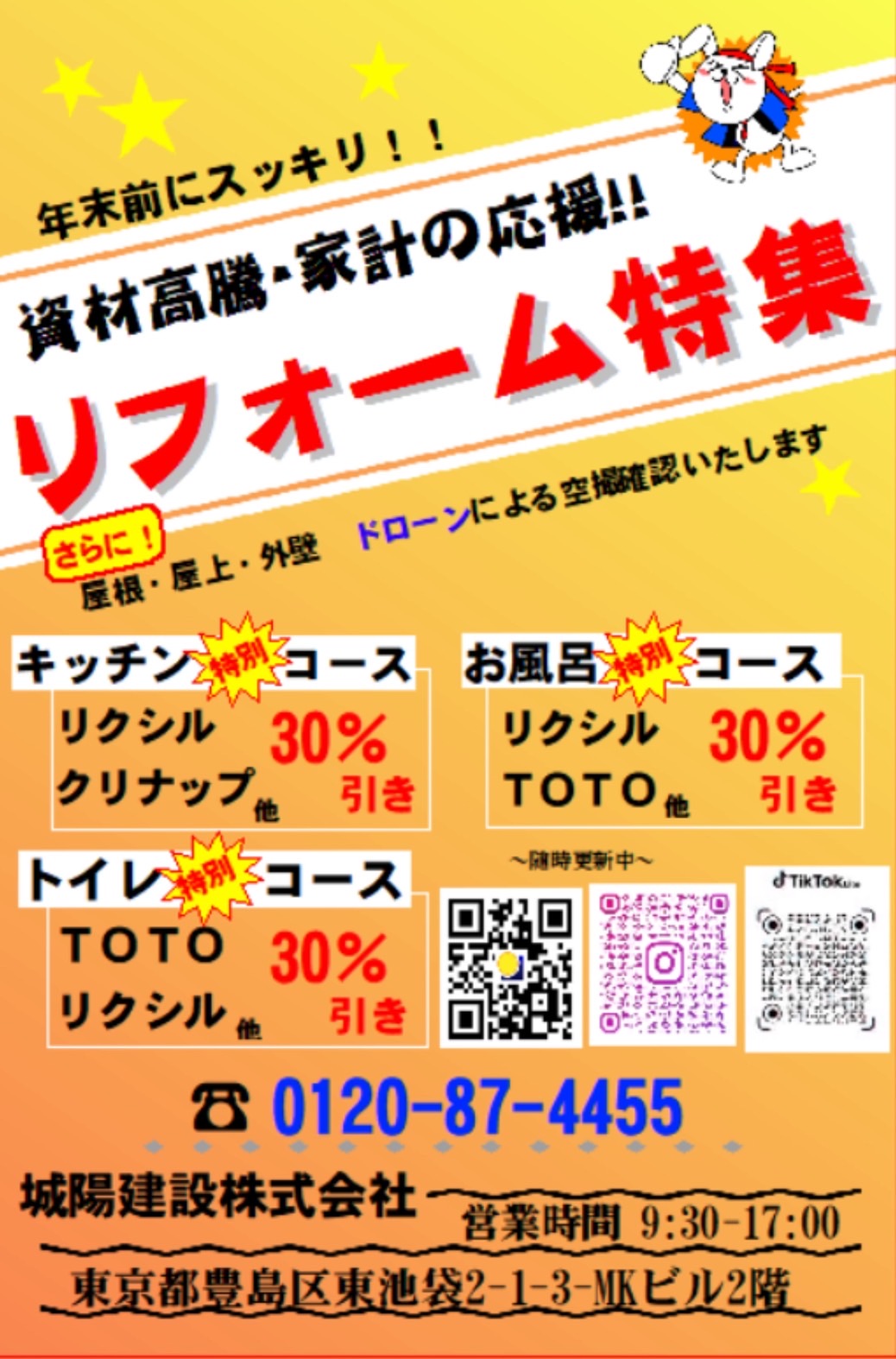 『リフォーム特集」のセールも今年いっぱいのご案内になります