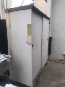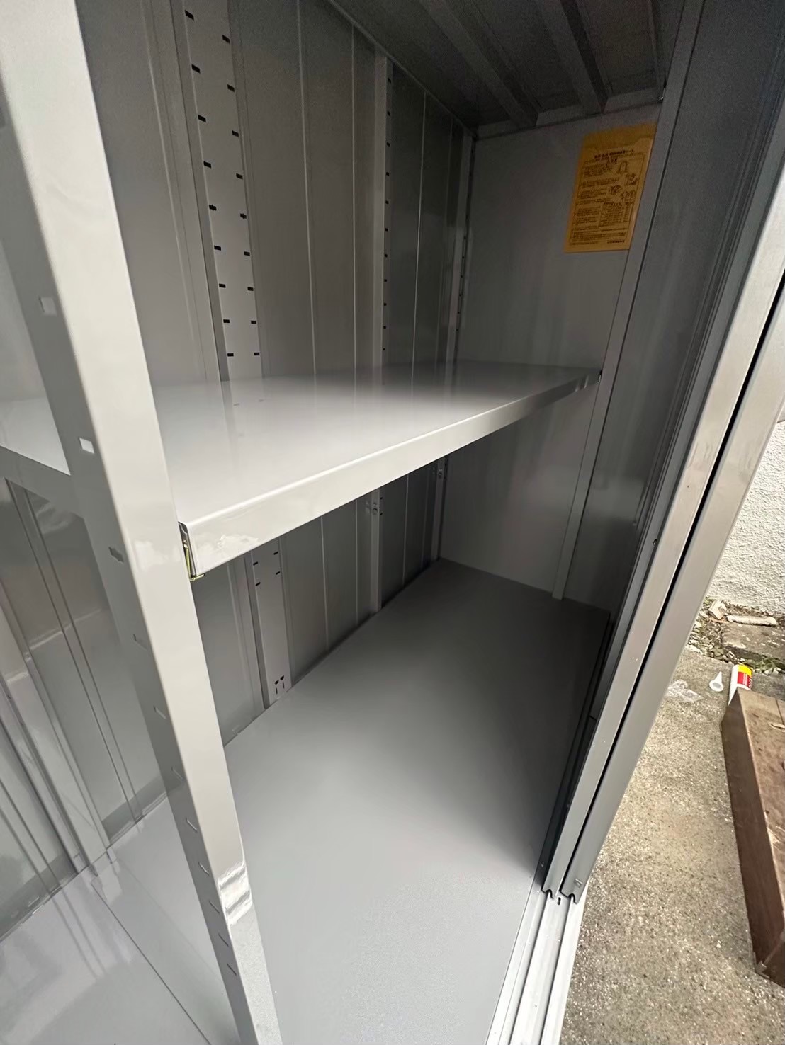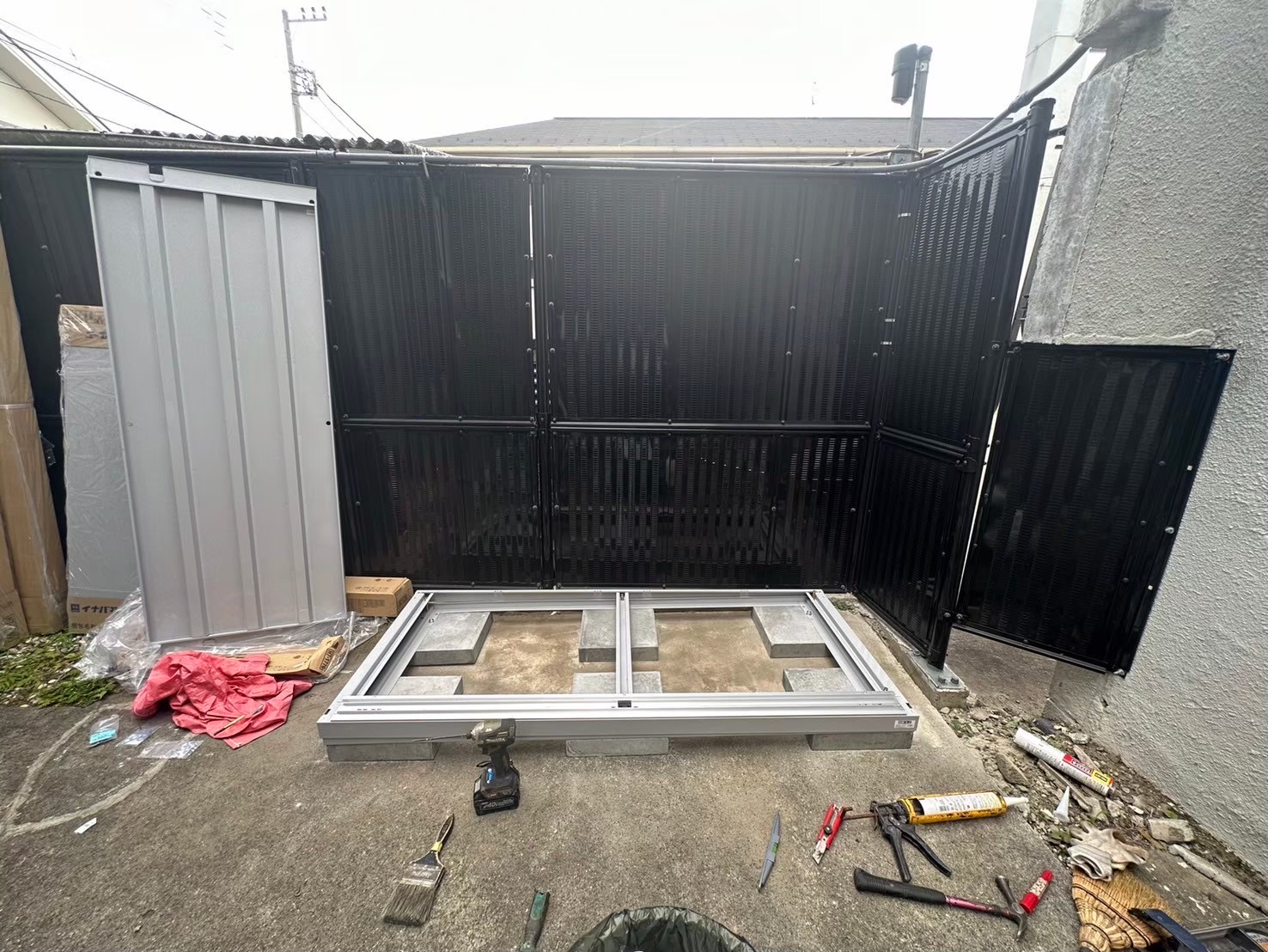 古くなり、建てつけが悪くなり、新しい物置に交換したいとご相談いただきました