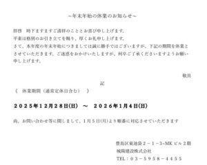 ご相談お見積もりは本日までです、ただし施工は年明けになります!