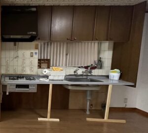 当時流行っていた暗めのシステムキッチンを改修していきます