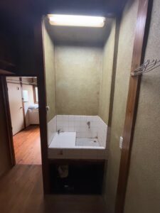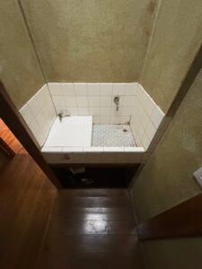 施主様に交換に際し、今の洗し台は壊さなくてはいけないとお伝えしたところ、交換したいけど予算がないから立派なのじゃなくて良いとのご指示、お任せください!