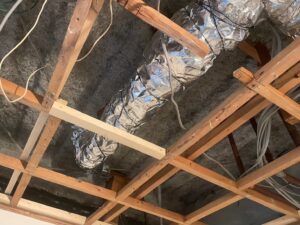 ↓断熱材を入れ、天井下地を作っていきます