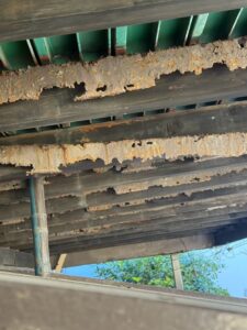 劣化がかなり進んでいたことがわかり、このままお使いになるとベランダが庭に落ちる可能性が出ていました