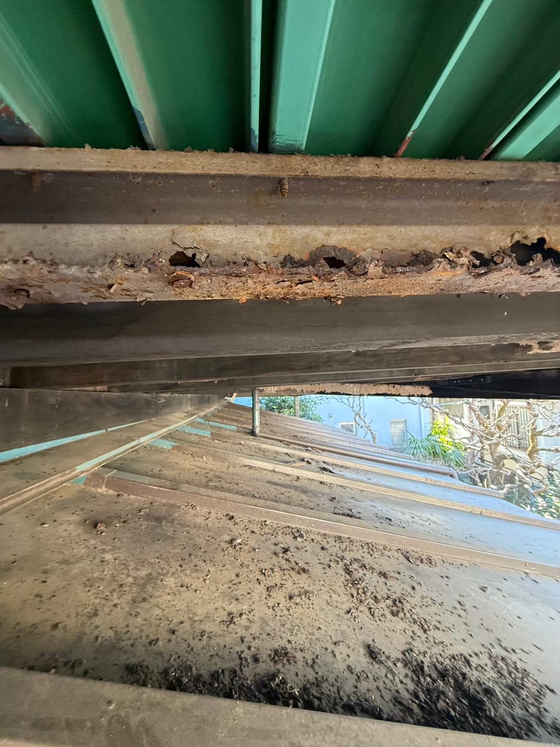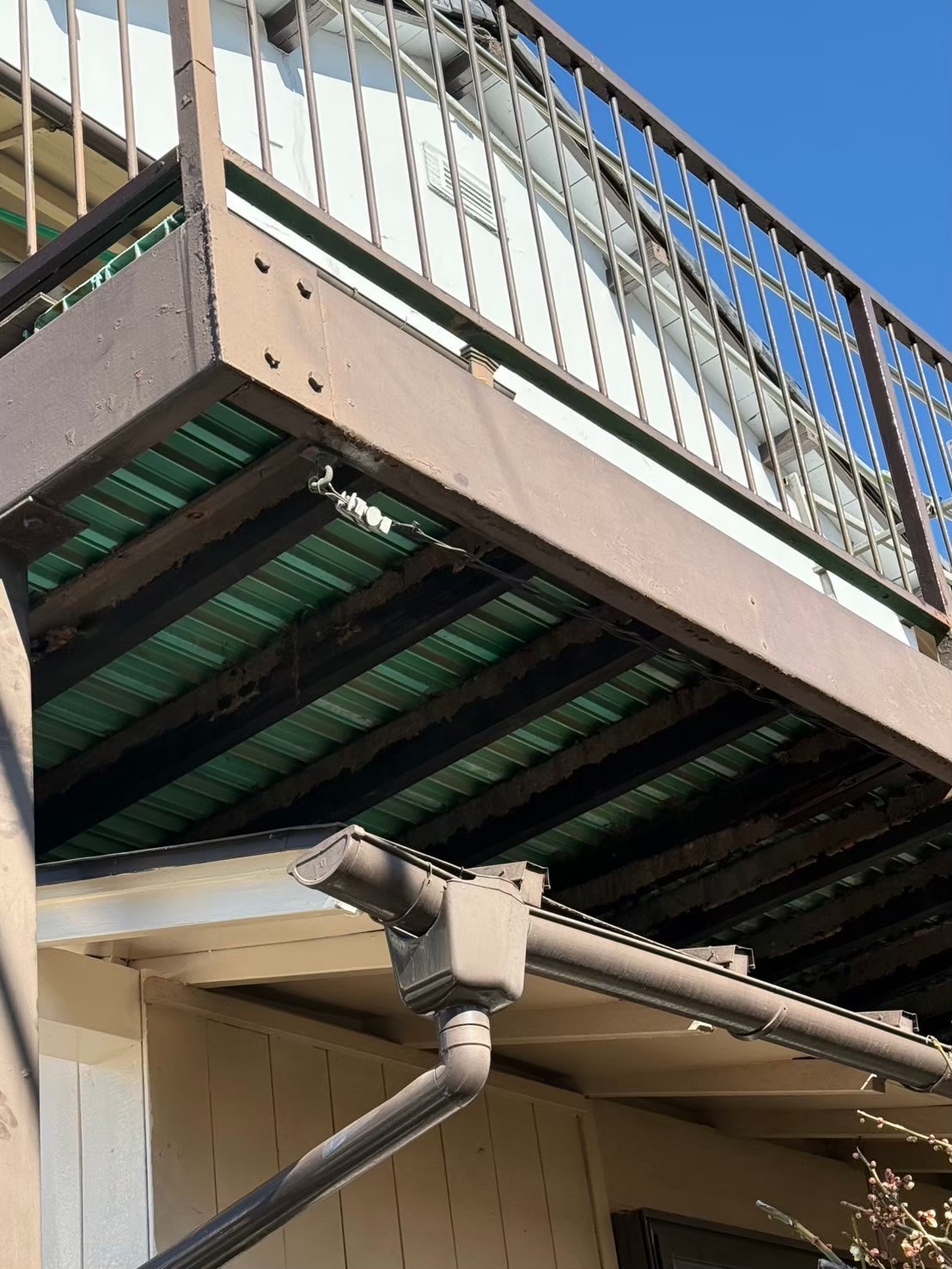 劣化がかなり進んでいたことがわかり、このままお使いになるとベランダが庭に落ちる可能性が出ていました